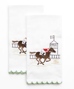 Bring the thrill of the final stretch straight to your kitchen with our At the Finish Embroidered Tea Towels. Whether you’re a seasoned expert at the races or just placing bets on the prettiest silks, these charming towels are a winner every time. Featuring a bold embroidered jockey and thoroughbred charging past the finish line, they celebrate that heart-pounding, nose-to-nose moment every horse racing fan knows too well.