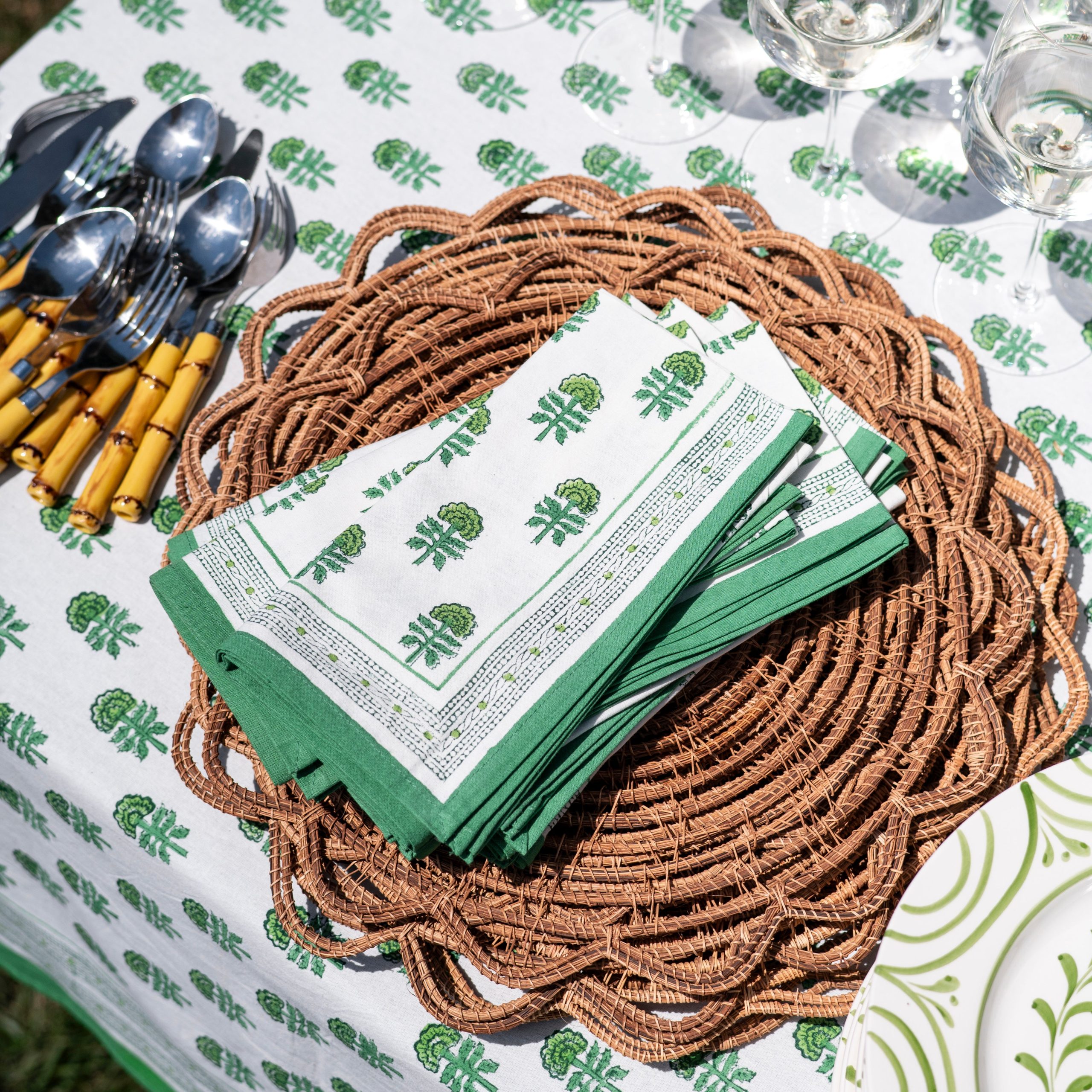 Our Bamboo Cane Placemat adds a natural, yet rich texture to a colorful hand blocked print. Pairing well with all our unique prints, this placemat is a staple for spring brunches, outdoor parties or classic dinner settings. Sold in sets of 4.