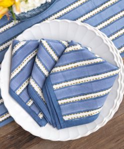 Our Dotted Stripe Blue Napkins bring timeless pattern to the table with hand block printed rows of blue stripes. Made from soft cotton and sold in a set of four, they’re easy to pair with solids, florals, or other classic blues.