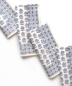 The Elise Blue Napkins add a gentle touch of pattern to your table. These hand block printed cotton napkins feature leafy florals in a fresh palette of blues. Understated but never boring, they’re designed to mix seamlessly into any tablescape.
