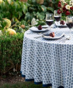 Brighten your table with the classic charm of the Elise Tablecloth in blue. Inspired by vintage Provençal patterns, this hand block printed cotton tablecloth features soft florals and leafy vines in layered cornflower and cobalt hues. Light, airy, and endlessly versatile.