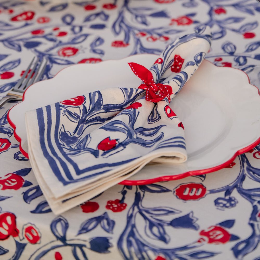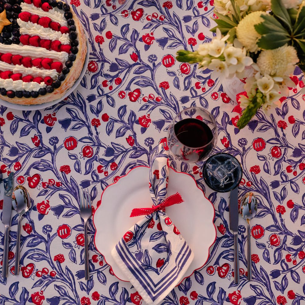 Our vintage Emma print has been going strong for over 25 years. This updated red, white and blue colorway is patriotic and all-American. Think Memorial Day and 4th of July, summer picnics and clam bakes. These classic red, white and blue napkins will become your summertime favorites for years to come.