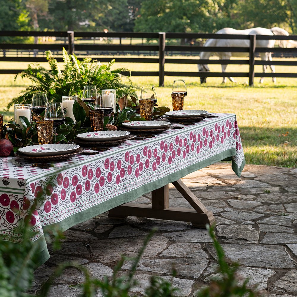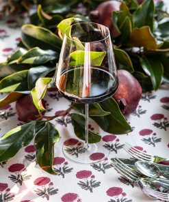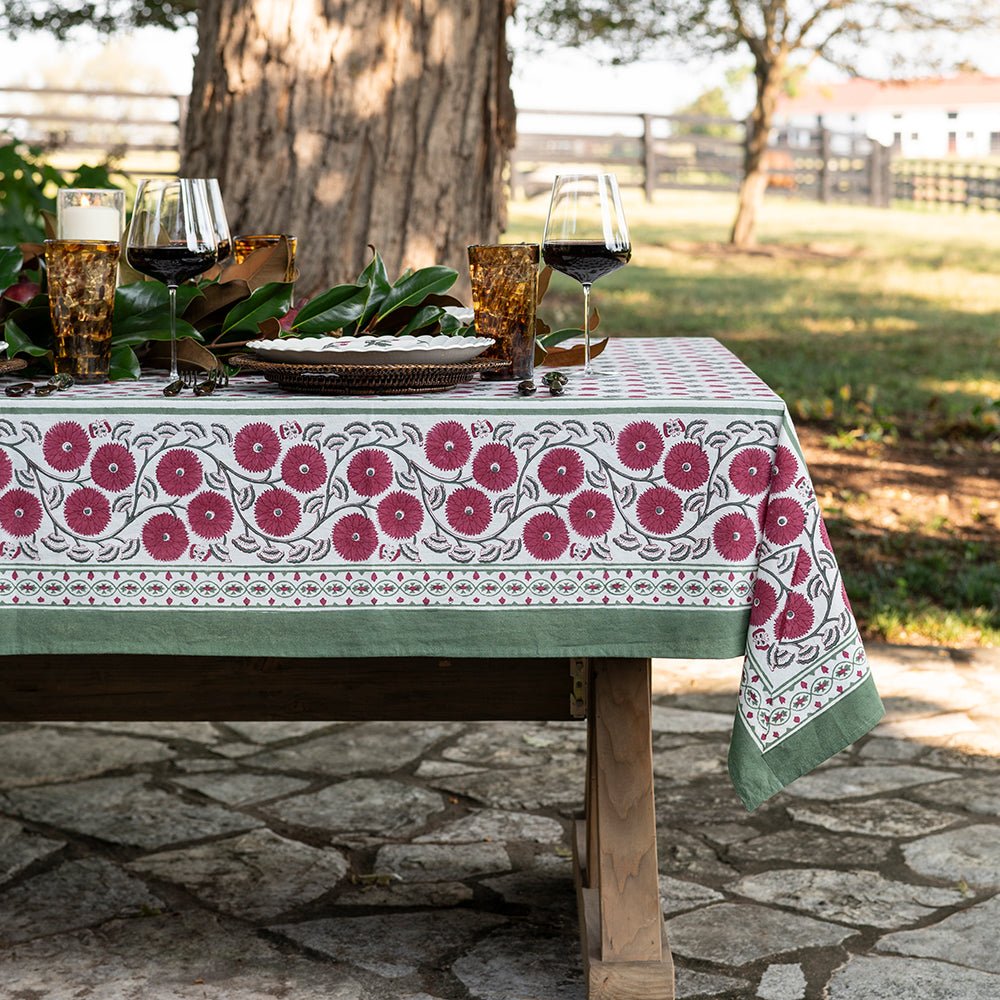 Named after an ancient and holy city in India, our Gaya Rose tablecloths capture the splendor, mystery and beauty of the Asian subcontinent. Printed by hand using rich dyes and carved wooden blocks to achieve a one-of a-kind design, these cotton dinner napkins make a striking display on your formal tabletop.