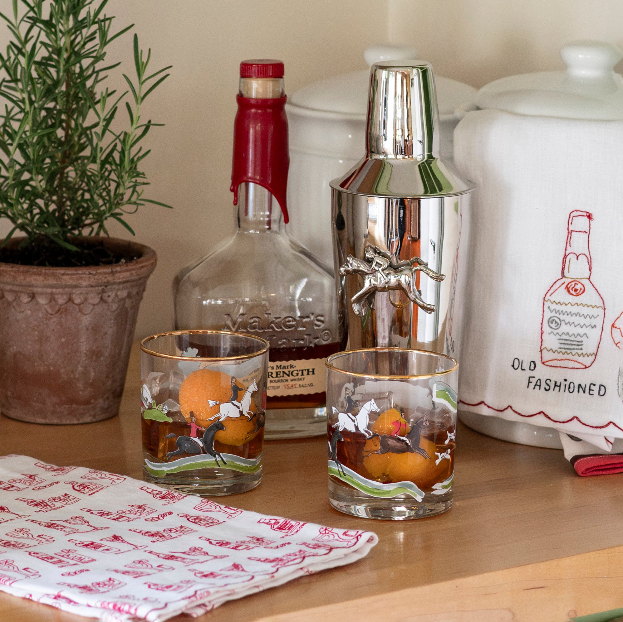 Off to the hunt! For the equestrian enthusiast, elevate your barware collection with our exclusive equestrian hunt scene glassware. Featuring four unique hunt scene print in with gold metallic rim, this glass brings sophistication to everyday and formal gatherings.