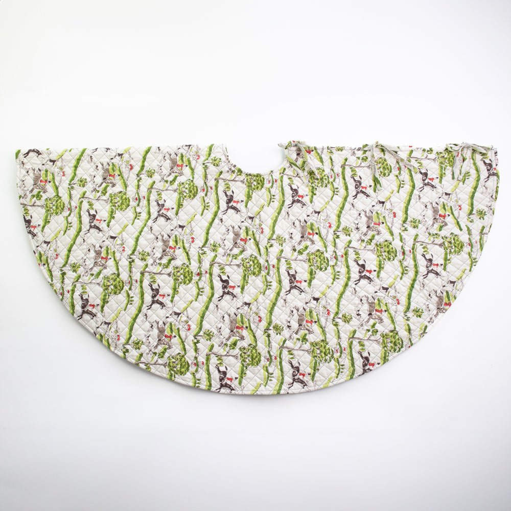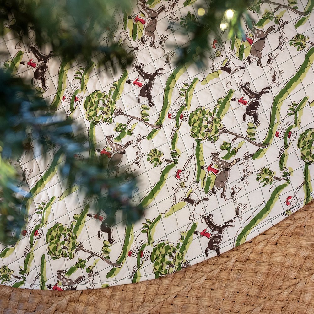 Add a touch of timeless elegance to your holiday decor with this handcrafted Quilted Christmas Tree Skirt, featuring a beautiful equestrian hunt scene. Meticulously hand block printed, the design captures the spirit of a classic countryside hunt. Crafted from 100% cotton, it’s both durable and soft, offering a perfect balance of function and festive charm.