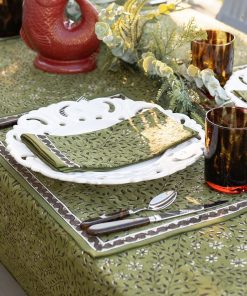 Soft cotton napkins patterned in russet and green bring character and joy to every meal. Whether folded neatly or casually draped, they add warmth, wit, and the spirit of togetherness to the table. Perfect for a holiday lunch under the palms, with the family insisting holly doesn’t belong in the tropics.