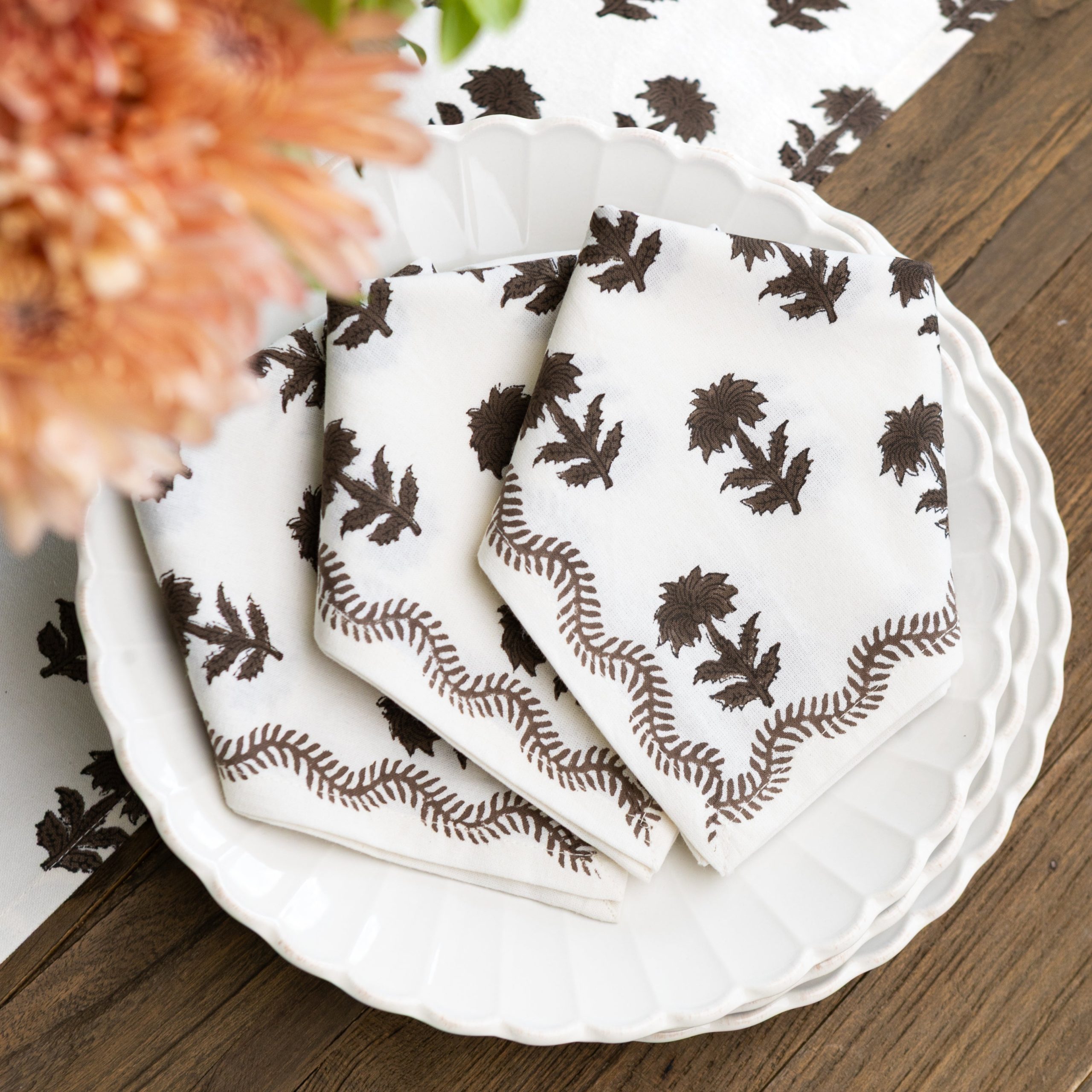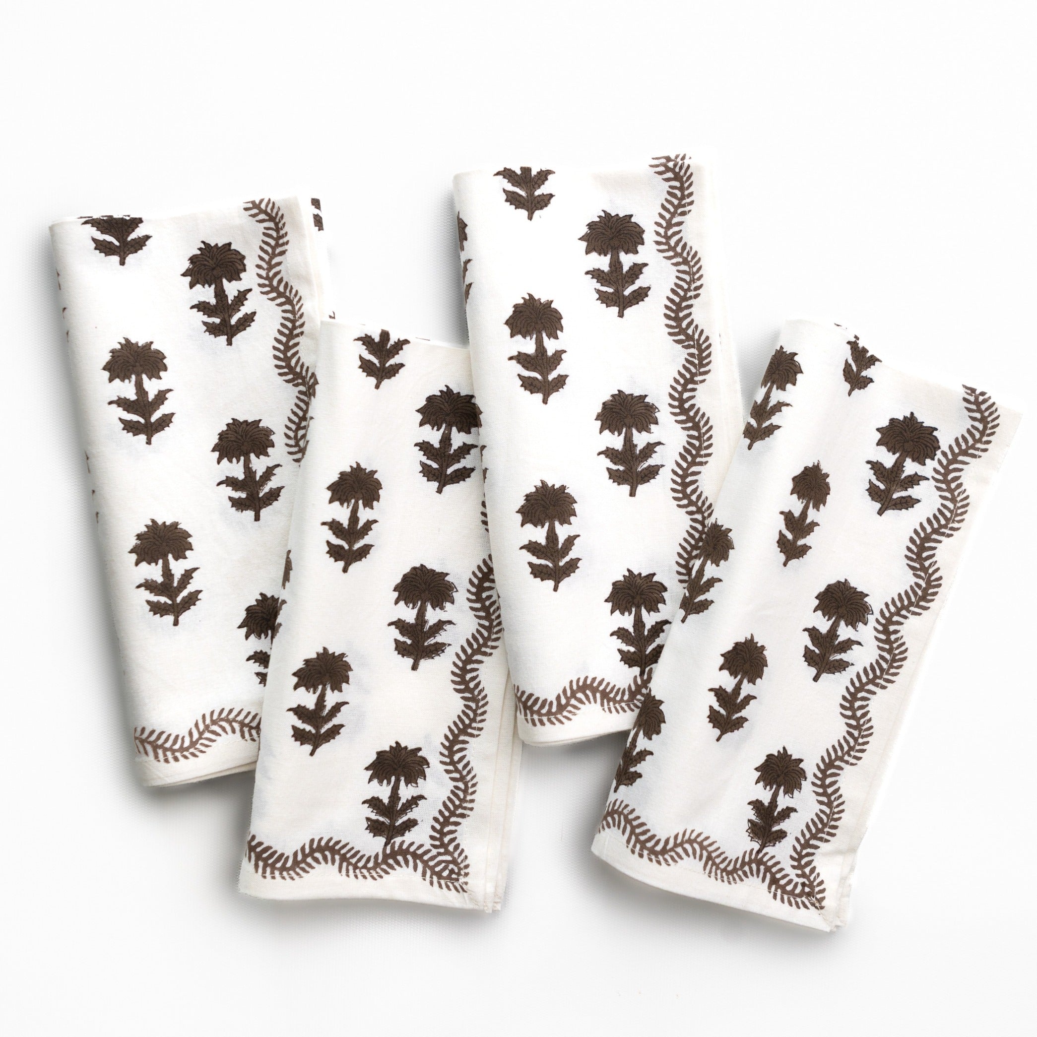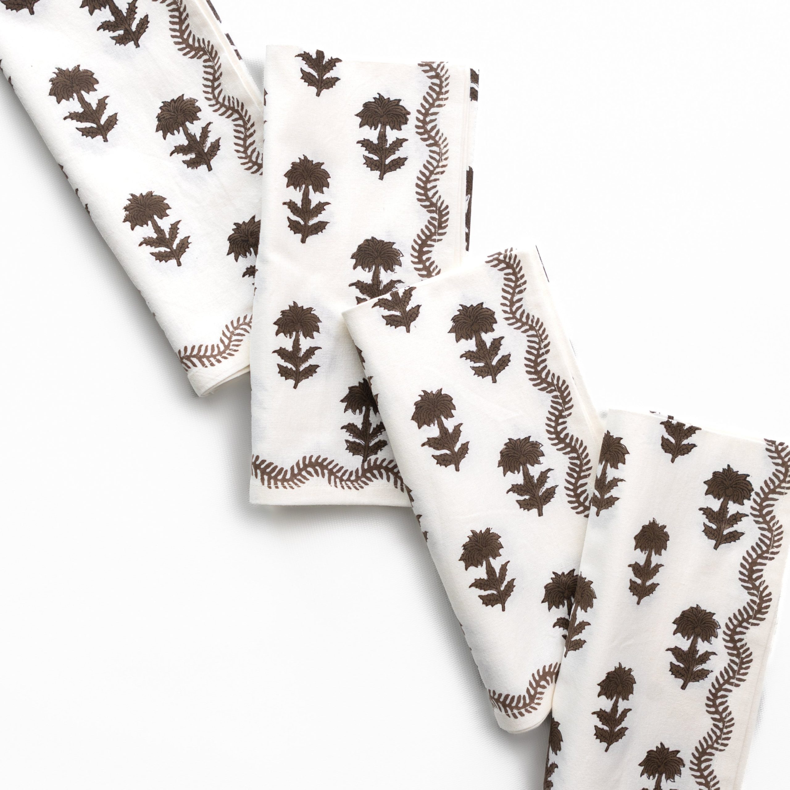 India Hicks Home Winter Flower Chocolate Napkin | Set of 4