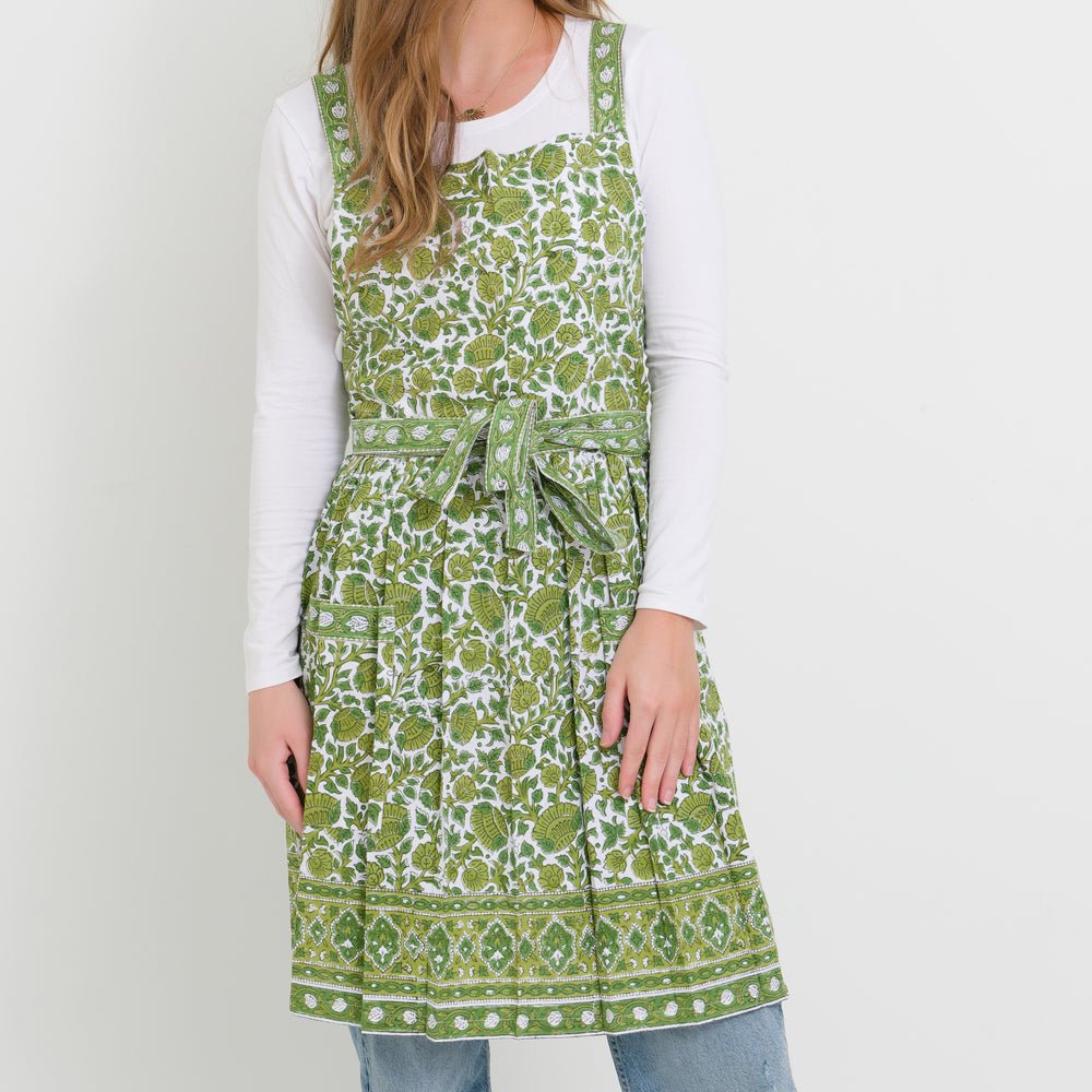The Jade Blossom Apron brings beauty straight into the heart of the kitchen. Hand-block printed with lush florals and finished in an easy, wearable silhouette, it’s designed to feel comfortable, relaxed, and quietly cheerful.