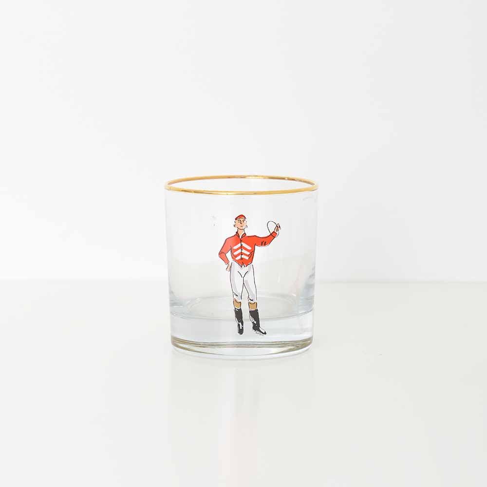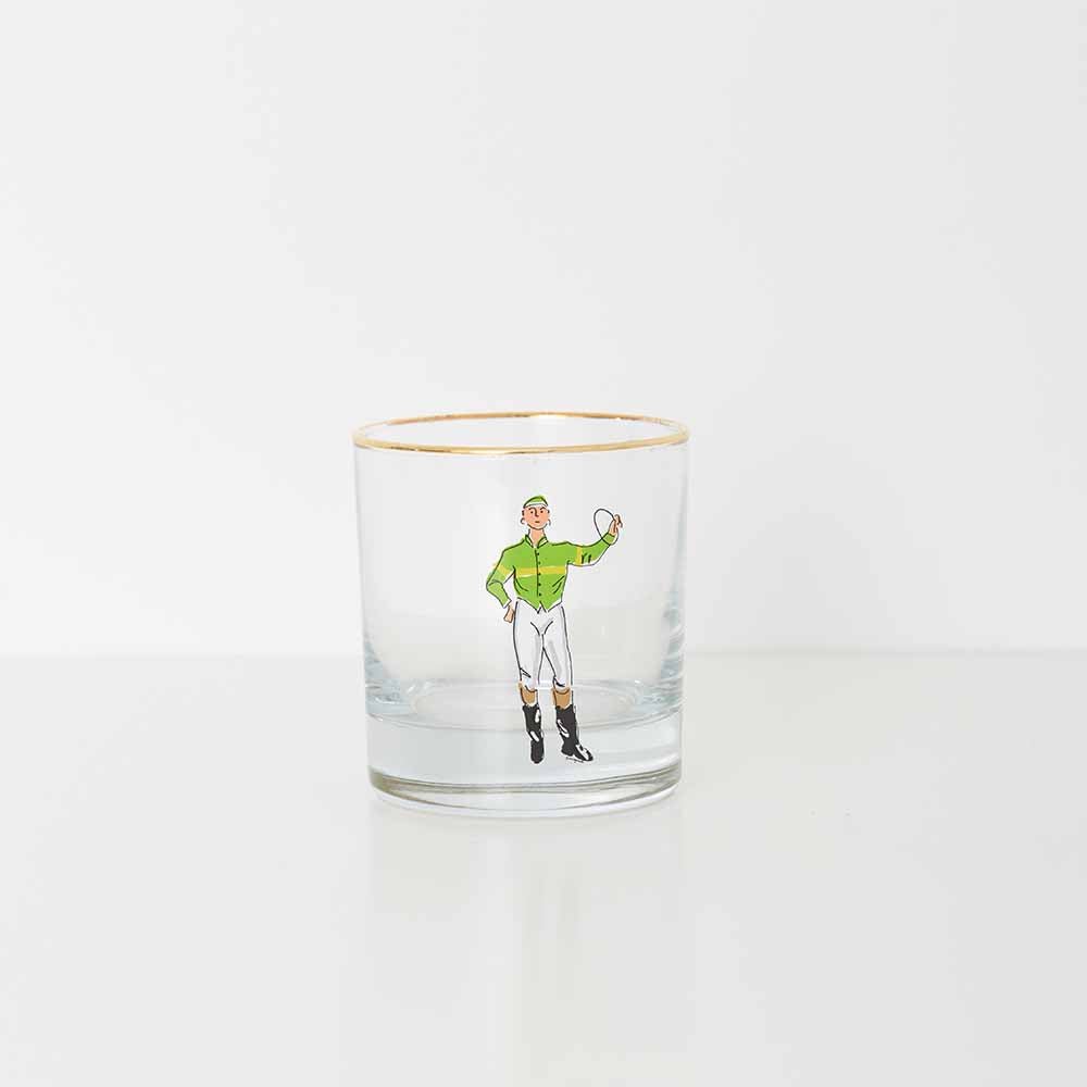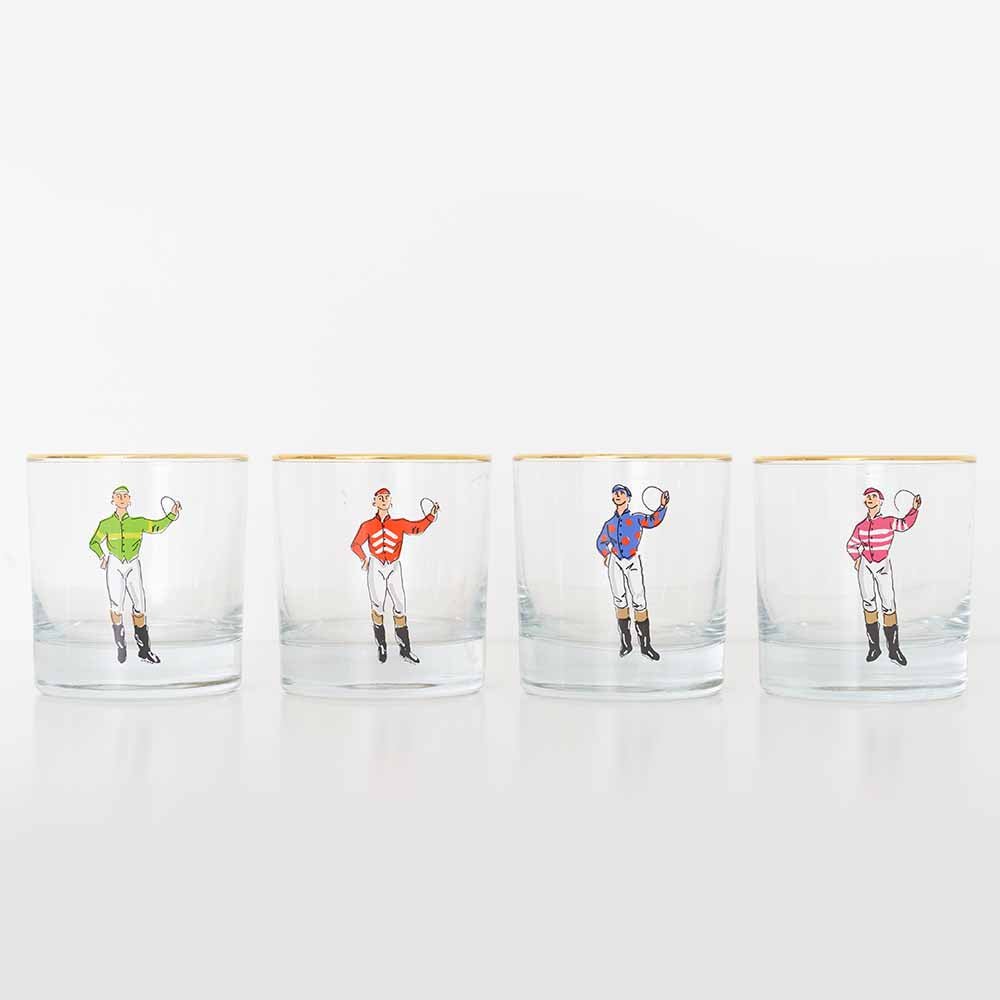 Off to the races! For the equestrian enthusiast, elevate your barware collection with our Jockey Glassware. Featuring four unique jockeys in bright colored silks and a gold metallic rim, this glass brings sophistication to everyday and formal gatherings.