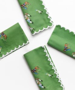 Set your table with a winner. Our Paddock & Jockeys Napkins are where equestrian elegance meets Derby-day fun. Embroidered with charming jockeys and paddock life on fresh green cotton, these napkins bring a sense of sport, style, and tradition to your gathering. Perfect for entertaining seasoned horsemen and casual fans alike, they make every place setting feel like a front-row seat at the track.