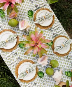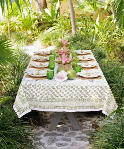 With its stunning hand-block printed palm trees and chic geometric border, our Palm Tree Green Tablecloth brings a breath of fresh air to your table. Whether you’re hosting an outdoor party, having a cozy beach breakfast, or even setting up a beach, this tablecloth is sure to bring a laid-back tropical vibe to any setting. The durable cotton fabric ensures long-lasting quality, making it a perfect addition to your linen collection.