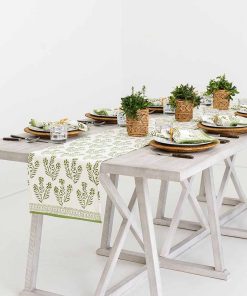 Our crowd-favorite Phlox print is reimagined in a vibrant, fern green that livens up any table. Grouped in happy clusters of three, the flowers look as though they’re swaying in a breeze, evoking the feeling of dining in a meadow or an orchard. Made from 100% cotton, this runner adds depth and artisanal detail to any dining setup.