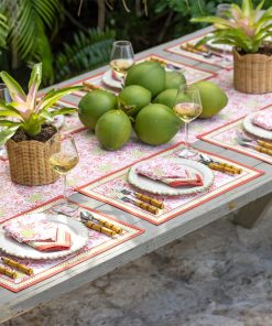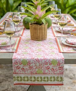 The Pineapple Party Pink & Green runner adds a vibrant layer of pattern down the center of the table, perfect for anchoring both casual and celebratory settings.