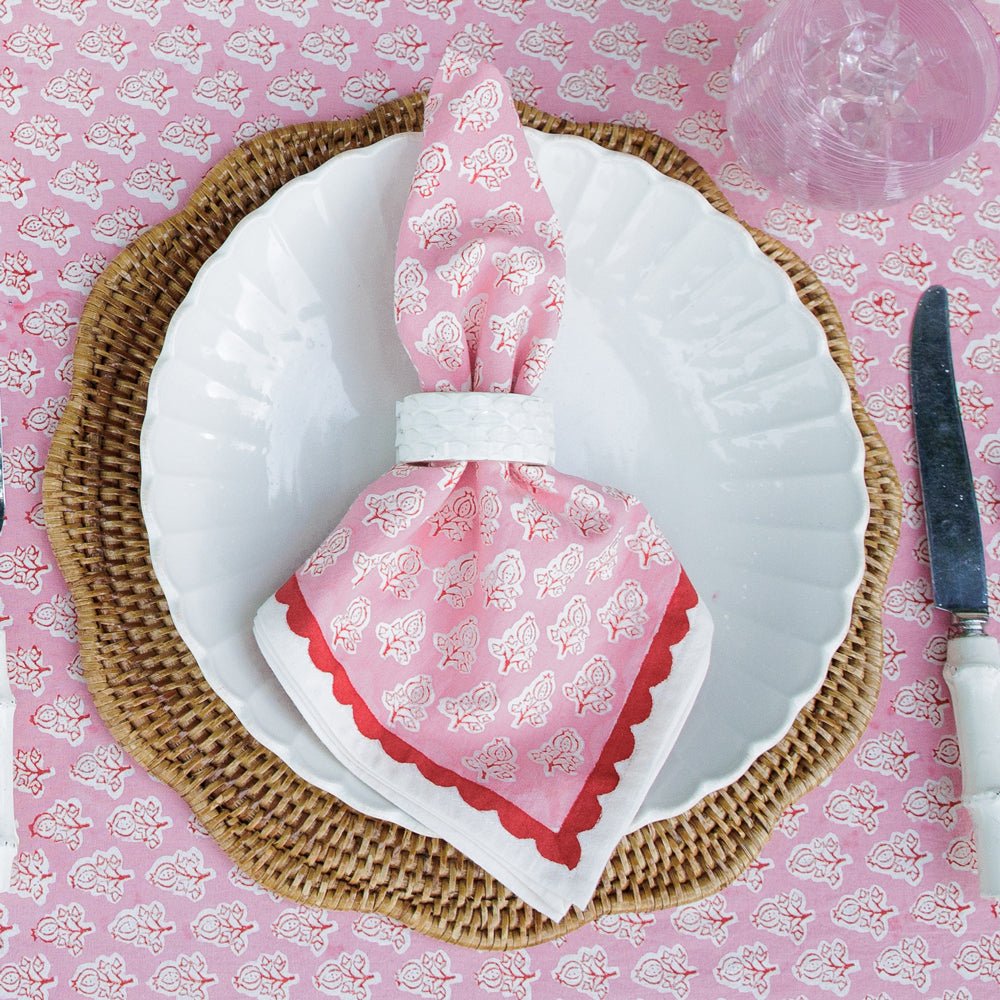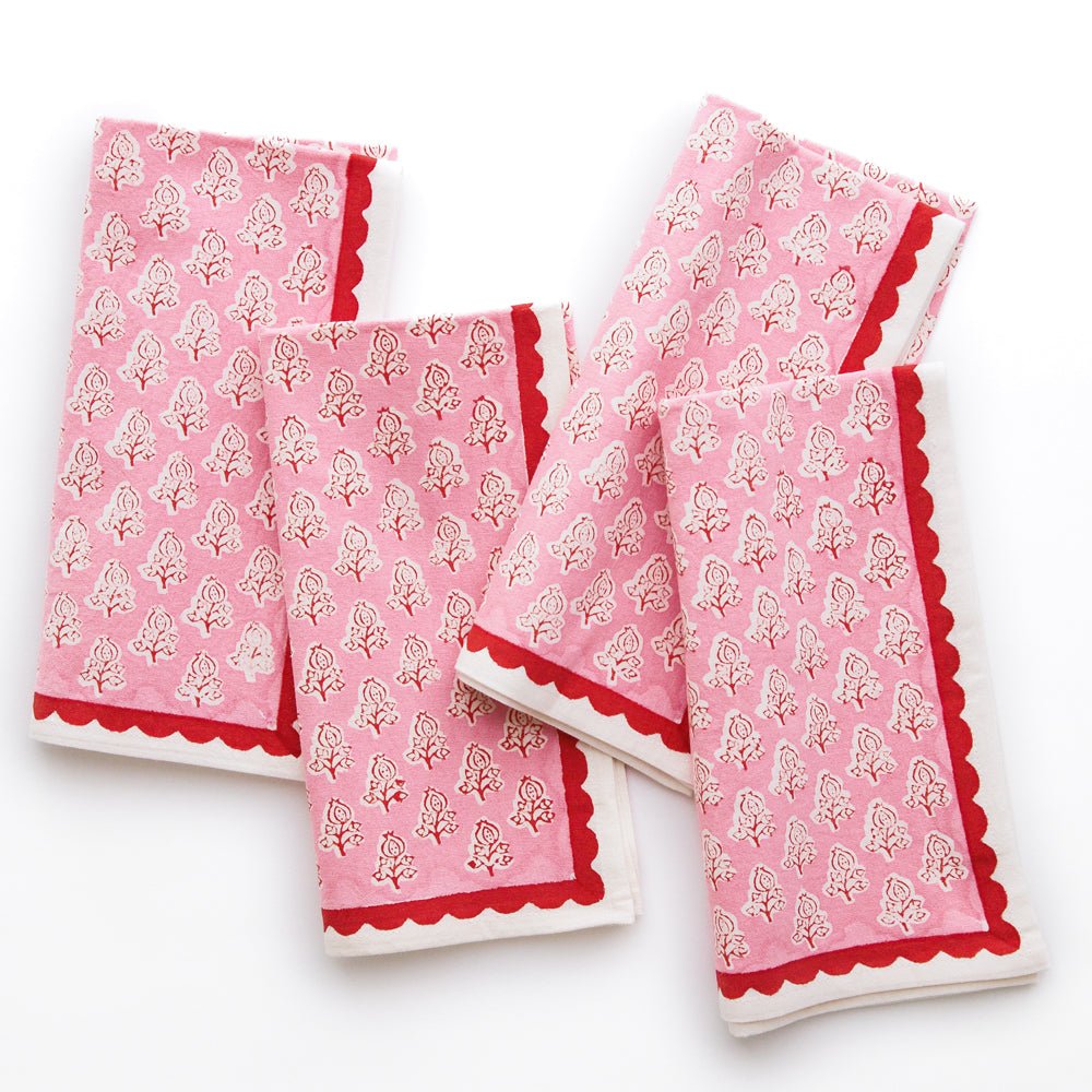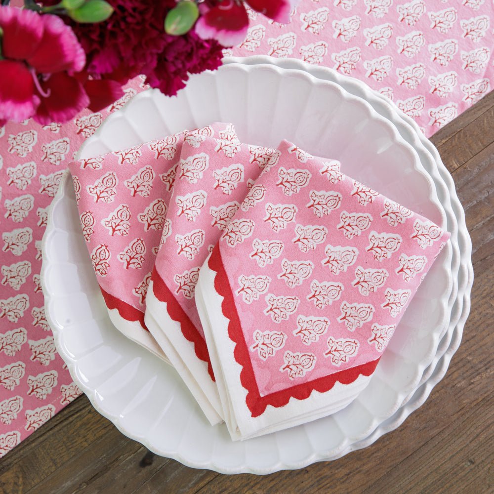 Bright, charming, and endlessly useful, our Pom Buti Pink Napkins bring a joyful pop of color to every place setting. The repeating buti motif feels classic and familiar, while the pink-and-red palette keeps things light and fun.