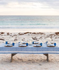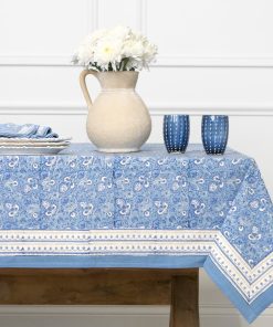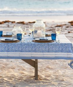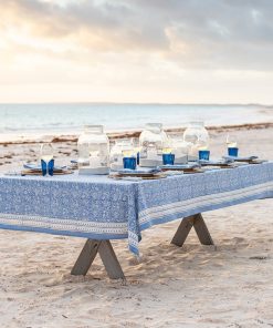 The Pom Fan Flower Blue & White tablecloth instantly set the tone for relaxed gatherings, outdoor dinners, and everyday meals that feel a little more special without trying too hard.