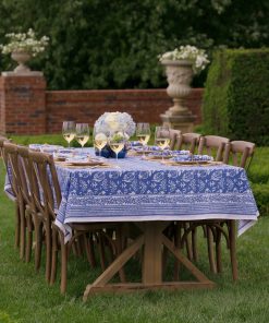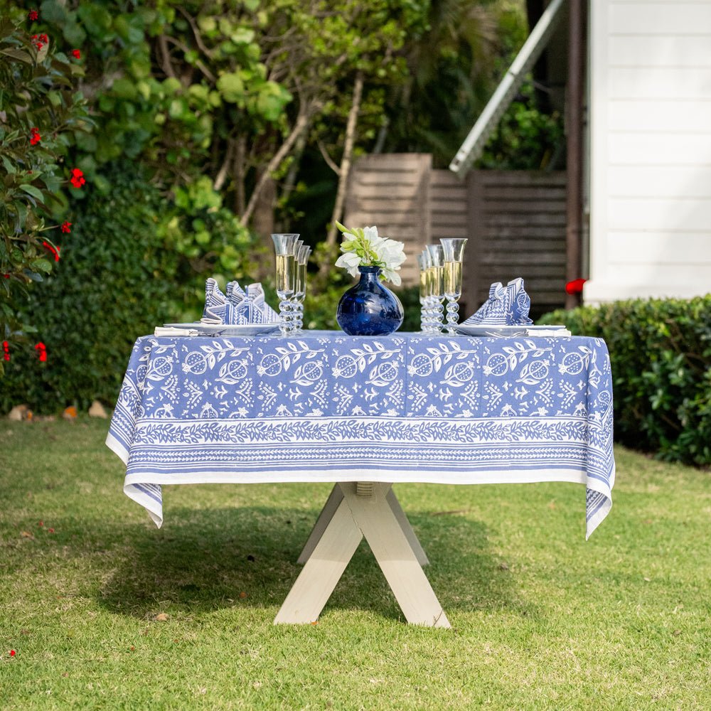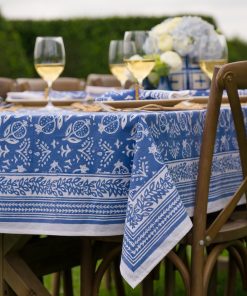 Pomegranate Blue is our brand’s signature print. Decorated in a distinctive, hand-painted Pomegranate surrounded by lively fleurettes and a complimentary border, this tablecloth is a great foundation piece for indoor or outdoor entertaining.