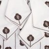 The deep burgundy embroidery and scalloped-inspired borders add an inviting pop of color to any tablescape—beautiful for fall gatherings, holiday entertaining, and year-round warmth. Sold as a set of four, they coordinate perfectly with the matching runner for a cohesive, polished look.