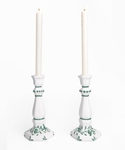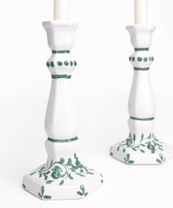 Illuminate your gatherings with our Pomegranate Scroll Candlesticks in Forest Green. Hand-painted with scrolling vines and stylized pomegranates, this pair brings warmth and artistry to any tablescape. Whether styled alone or flanking a centerpiece, they add height, pattern, and glow in every colorway.