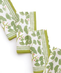 Refreshing spring green ginkgo leaves dance across this refreshing hand block printed napkin. A perfect complement to your table, no matter what season we are in. Truly a classic!