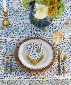 A fresh take on florals, our Starflower Napkins are hand block printed in shades of ochre and blue. These soft cotton napkins bring pattern, color, and craft to your table—whether every day or entertaining.