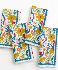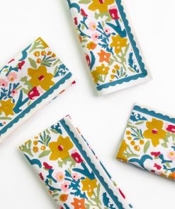 Brighten your dining table with the Teal Garden Napkin set. Hand block printed with a lively floral pattern in a blend of teal, yellow, pink and green tones, these napkins are perfect for adding a natural, handcrafted touch to your meals. This set of 4 is ideal for casual lunches or more formal dinner gatherings, infusing your table with fresh garden-inspired charm.